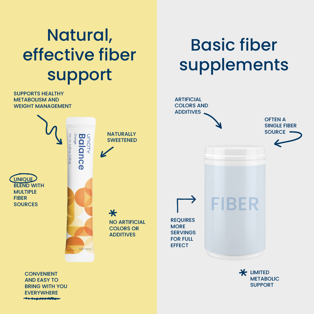 Balance - A fiber blend that slows sugar absorption and stops the blood sugar roller coaster that triggers unstoppable cravings.